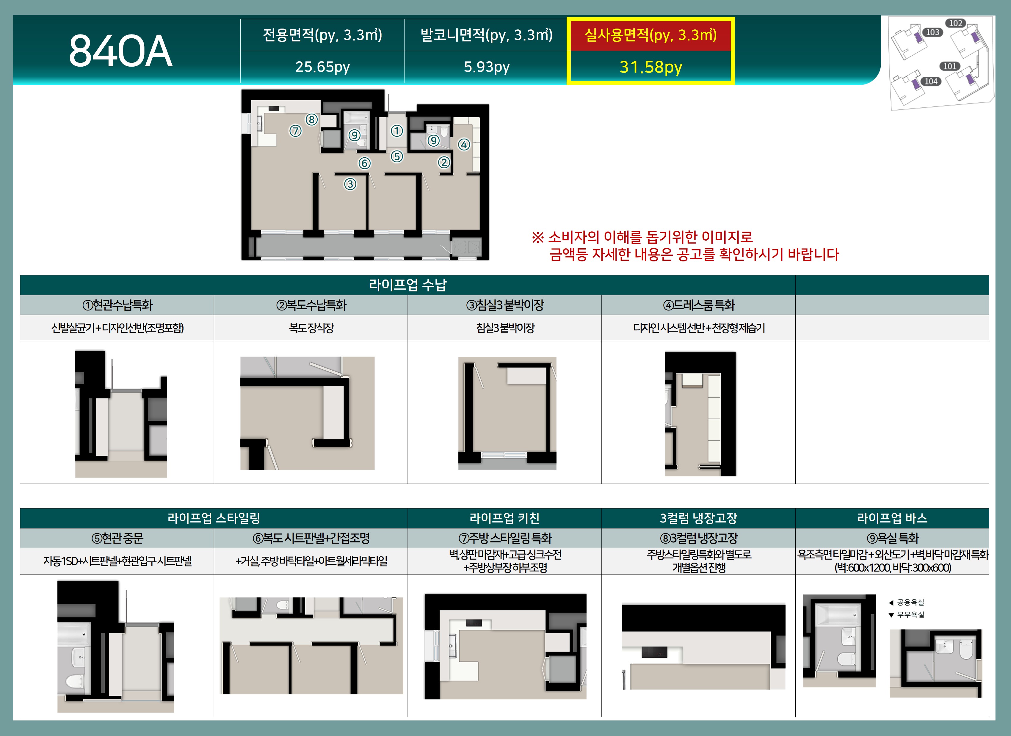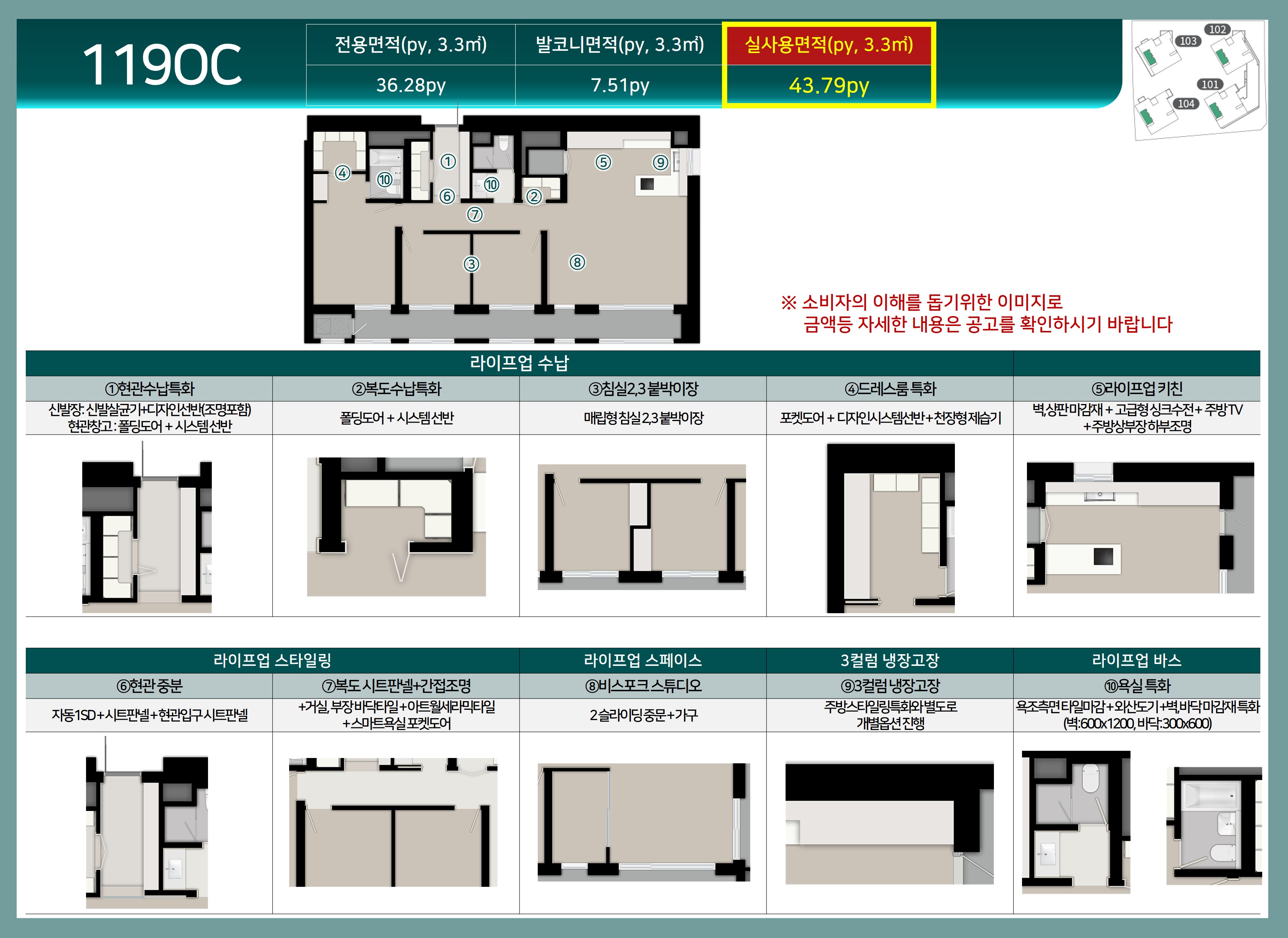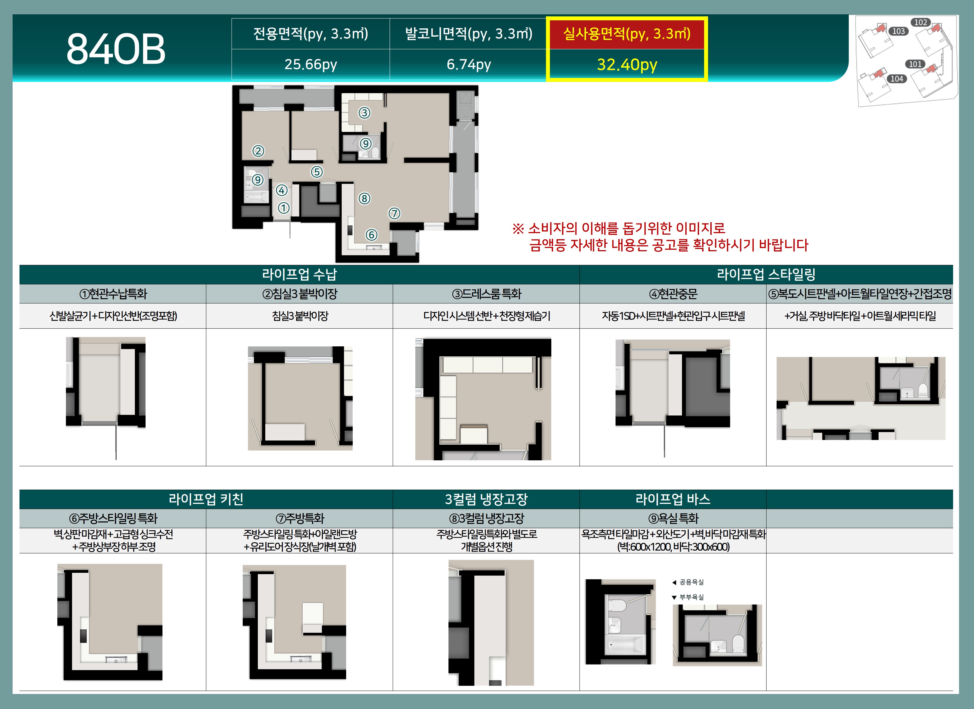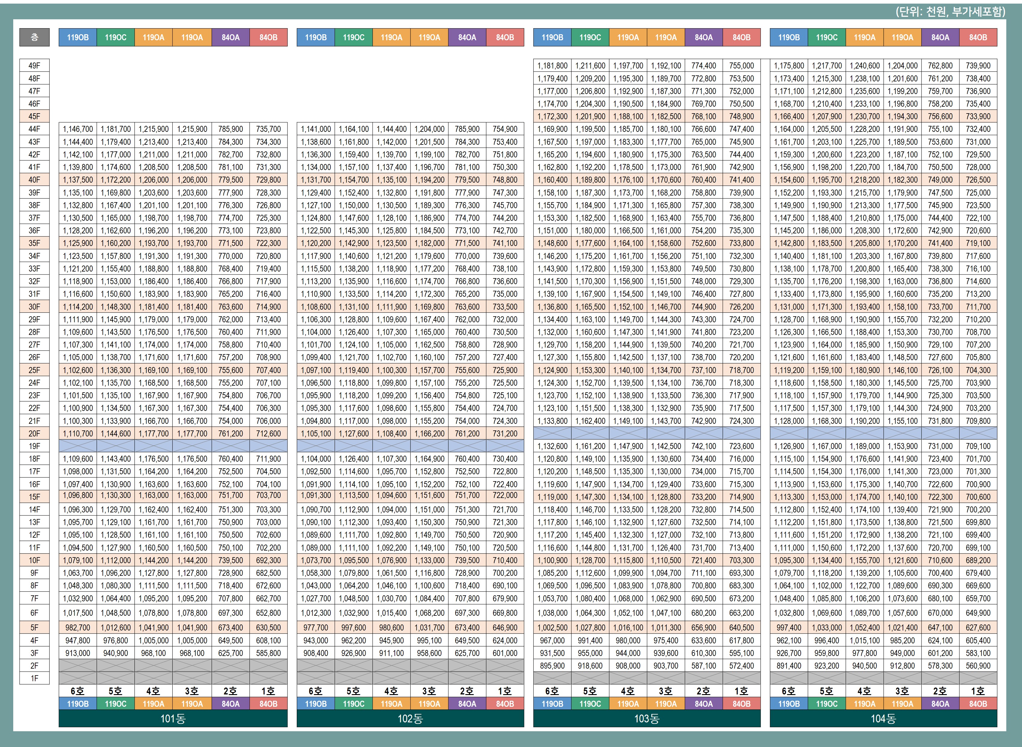 - 층별, 향별 가격 차이: 층수가 높고, 채광이나 조망이 우수한 세대는 분양가가 더 높습니다.