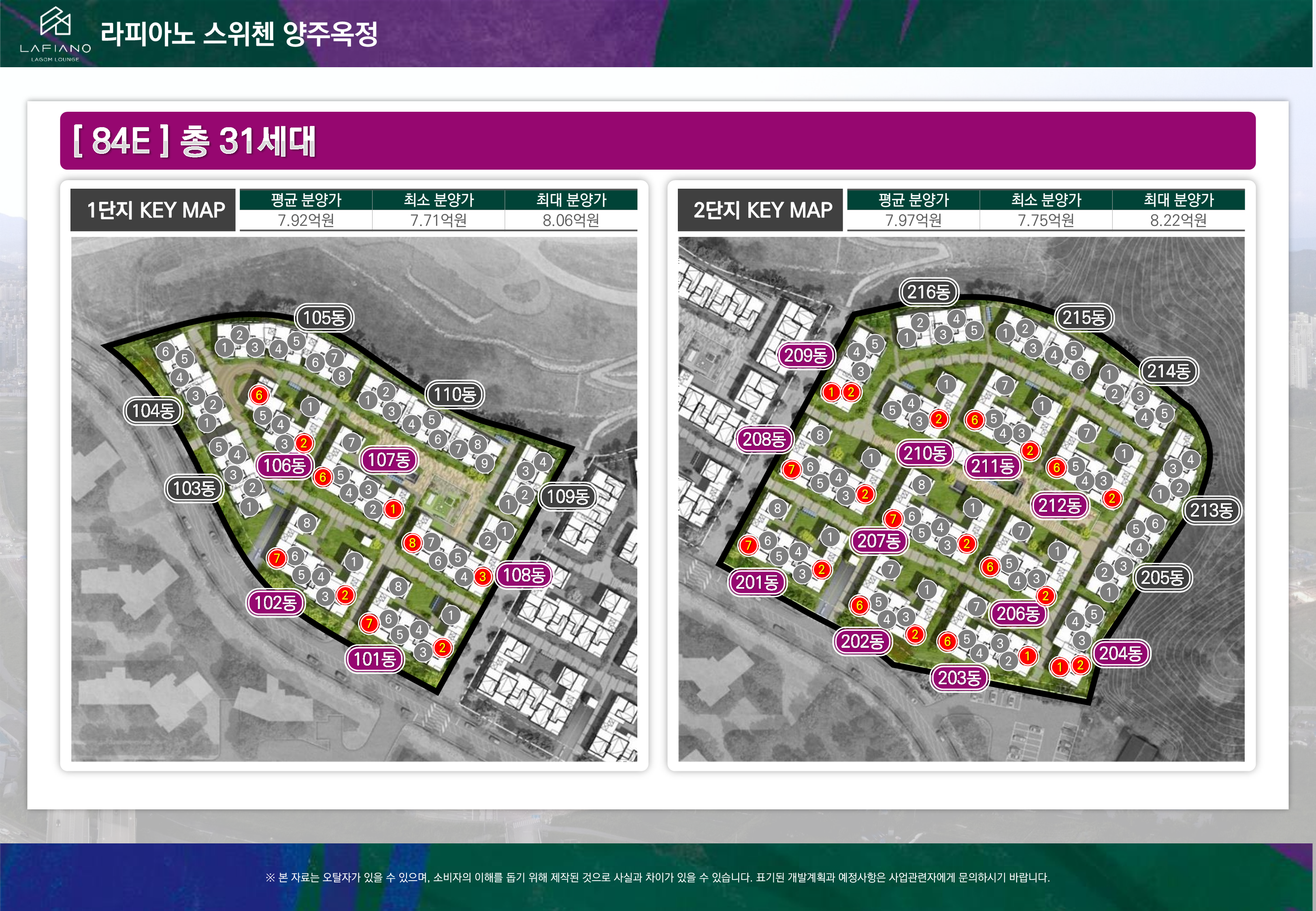 아래 단지 배치도에서 붉은 표시된 부분이 바로 E 타입의 자리입니다.