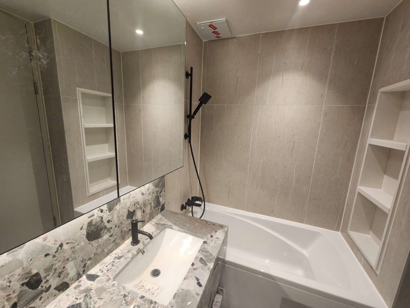 공용욕실은 샤워부스와 세면대가 고급스러운 자재로 마감되어 호텔 같은 느낌을 주네요.