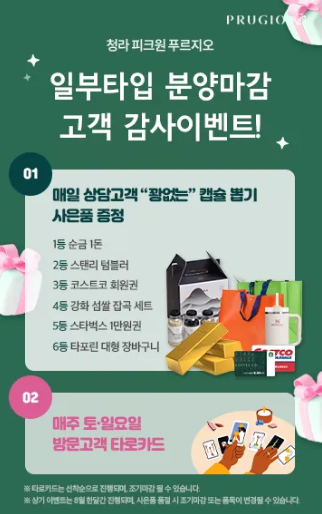 청라 피크원 푸르지오 모델하우스에서는 주말 동안 모델하우스 방문객들을 위한 특별한 이벤트가 진행됩니다.